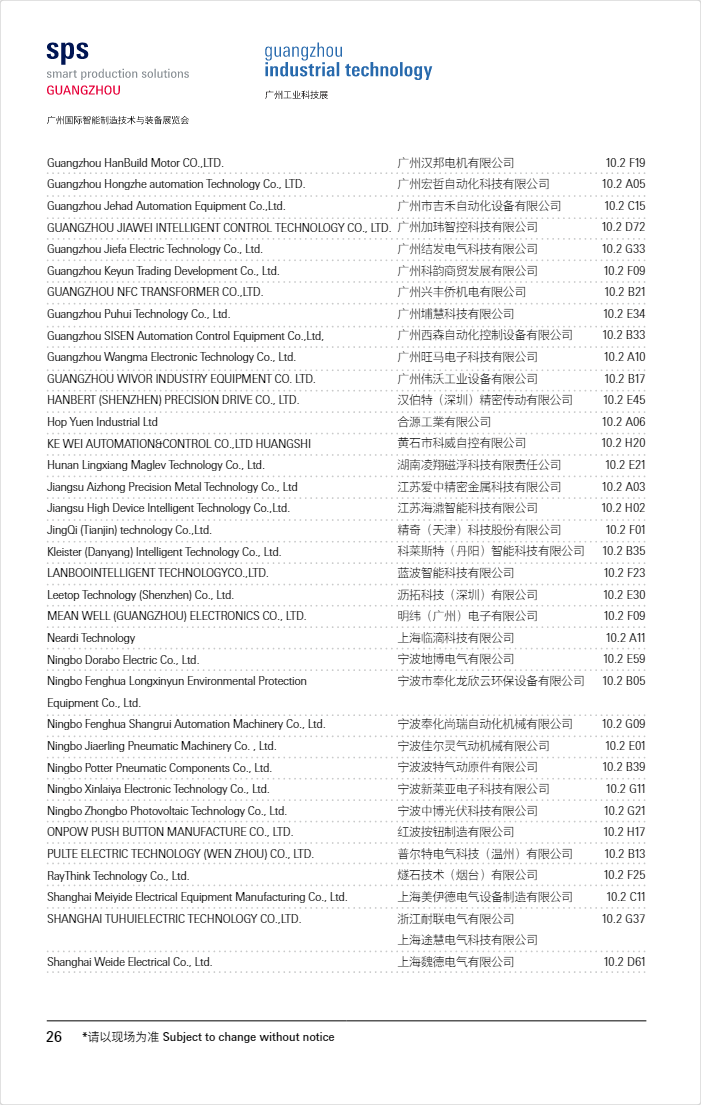SPS广州展2026展商名单