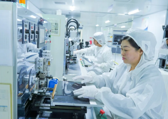 在贵安综合保税区晶泰科(贵州)光电科技有限公司,身着防尘服的工人熟练地操作着自动化设备,从切割、检测、超声波清洗,到偏光片附贴、热压,再到功能测试、组装、可靠性试验,热火朝天且井然有序。晶泰科作为一家集液晶模块研发、生产及销售于一体的国家高新技术企业,出口业务从80%增长到95%,客户遍布欧洲、中非、中东等地。