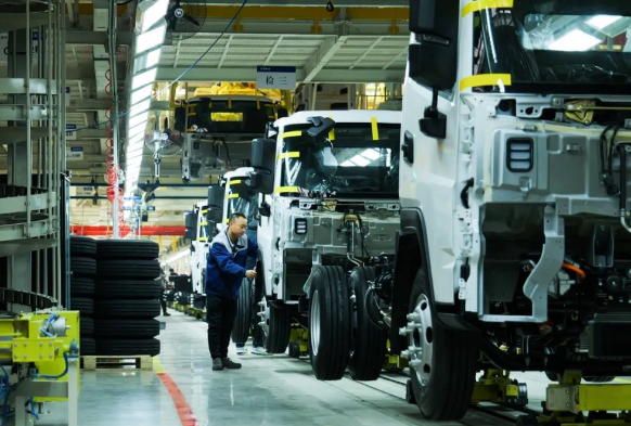 在贵安新区新能源汽车产业园内的贵州长江汽车有限公司生产车间,机器轰鸣、装配有序,一块块钢板在冲压、焊装、涂装、总装等工艺处理下变成一辆辆新车下线。长江汽车占地1800余亩,已发展建成先进的冲压、焊装、涂装、总装等四大工艺生产线,建成研发实验室及公用配套设施、纯电动货车整车生产线,具备纯电动货车整车生产资质。