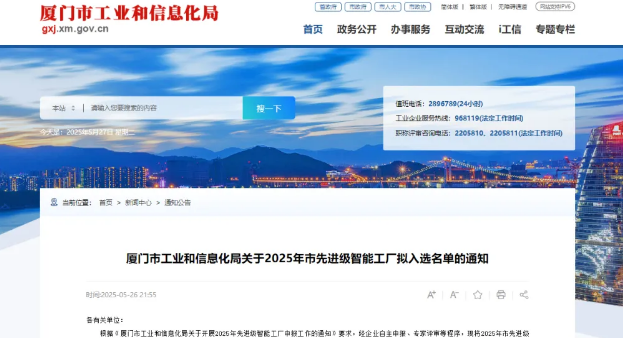 日前,厦门市工信局正式公布了2025年厦门市先进级智能工厂公示名单,共有24家厦门企业荣耀上榜,这标志着厦门市智能制造领域又迎来了新的发展动力。