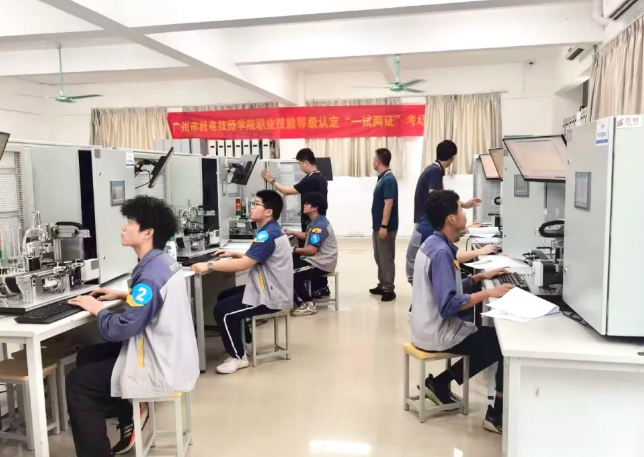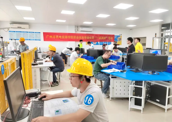 在广州市机电技师学院,工业机器人系统操作员 “一试两证” 考核工作也取得了显著成效。目前,已有 16 名考生顺利通过考核,获得了工业机器人系统操作员高级技能等级证书和发那科机器人调试工程师证书。近期,还将有一批考生参加电工高级技能等级证书和西门子智能制造工程人才认证(电气自动化)证书的 “一试两证” 考核。